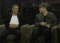 Bono hands Dave A cigar, Dave accepts it, smells it and thanks Bono, saying,"God Bless You. Well I'll get to that A little bit later. Thank you very much." Bono says," Fidel Castro gave me that." Dave goes, "Awoahh." in a slightly wierd tone! Dave starts with "Thank you for being here, how are things going? Alright??" Bono looks at Larry saying,"ther're great! Coudn't be better actually!"
